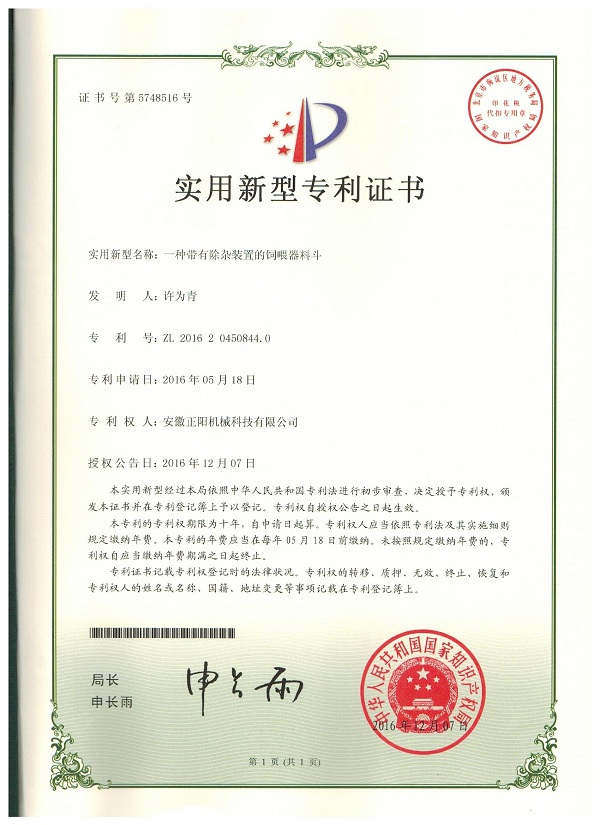 | | 實(shí)用新型專利證書 | | | | | | | 閱讀次數(shù):3172 返回 | |