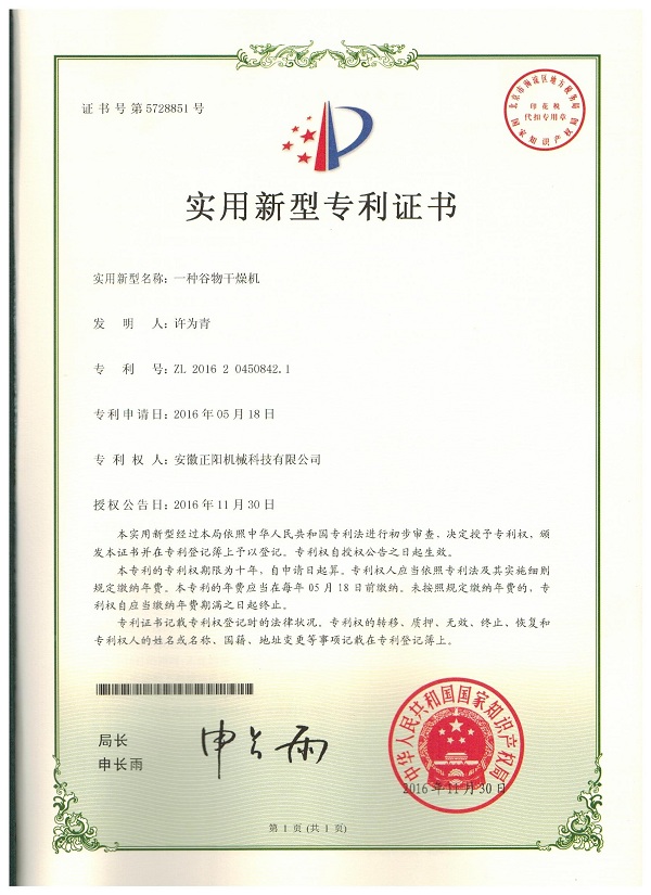 | | 實(shí)用新型專利證書 | | | | | | | 閱讀次數(shù):11178 返回 | |
