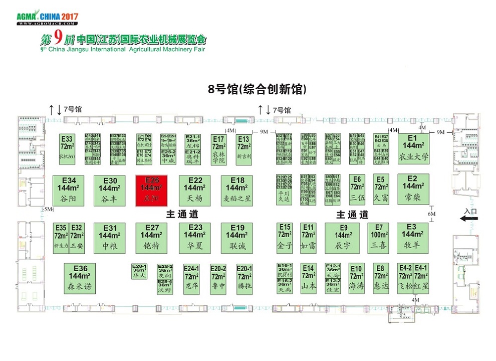 第9屆中國(江蘇)國際農(nóng)業(yè)機械展覽會展位分布圖:紅色區(qū)域